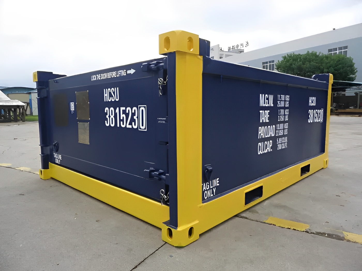 The 10ft DNV 2.7-1 Half Height Open Top Offshore containers is twice as low as the standard height and doesn’t have a steel roof. This type is equipped with a single swing steel door. Moreover, these units are stackable and available with certified slings.